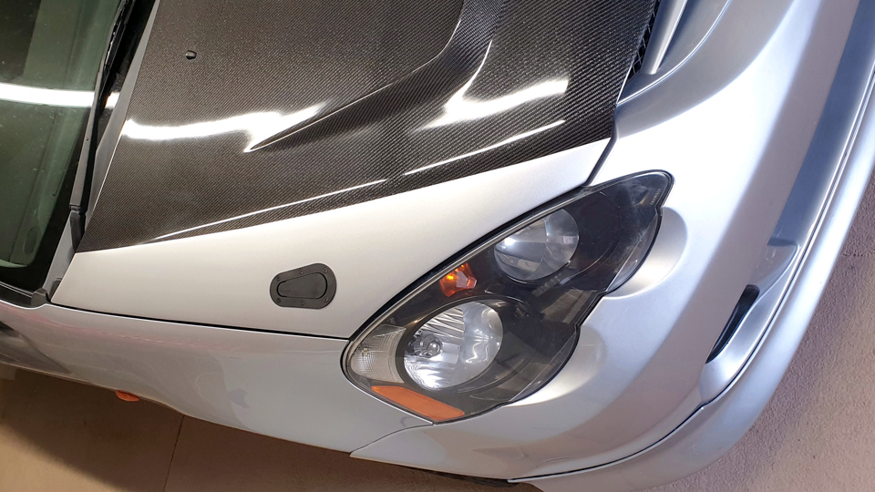 Once again the wrap elemts were done first. An easy initial part was wrapping the edges of the carbon bonnet. As tends to be the case with carbon bonnets, they do tend to look just plonked on and they detract from the lines of the car. So by doing the edges and following the contours of the bonnet, we can regain those nice flowing lines of the lights and wings, while still showing off the majority of the weave.
