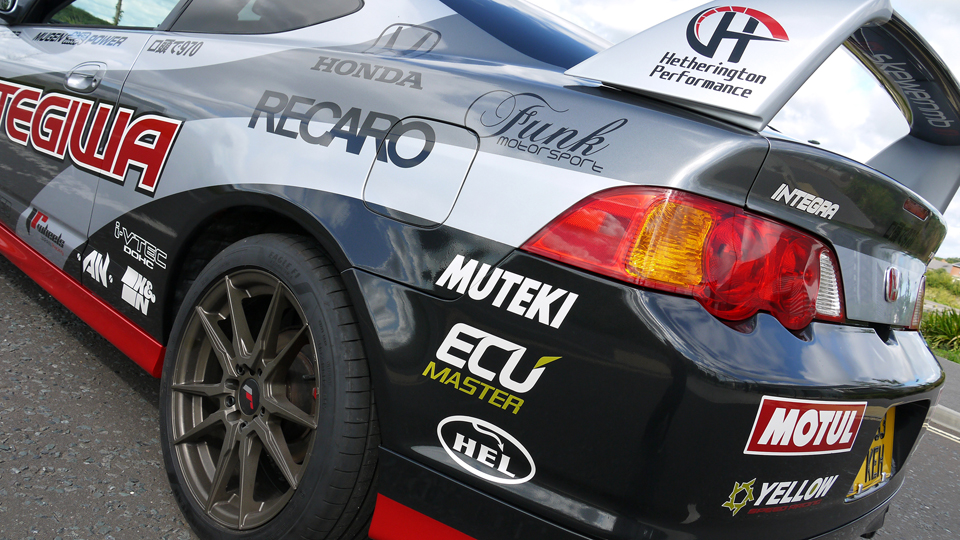 I've always had a soft spot for the Integra Type R, so when the chance came up to sort a livery for this very nice silver example I jumped at the chance. The owner supplied a few pics of a render of some graphics from Forza, with a basic requirement of "I want that one". Another requirement was for large Tegiwa logos for the sides as a new sponshorship deal was being put in place with the company. We went back and forth a few times honing the ideas and finalising the colour and logo choices before the vehicle was dropped down and work could begin.