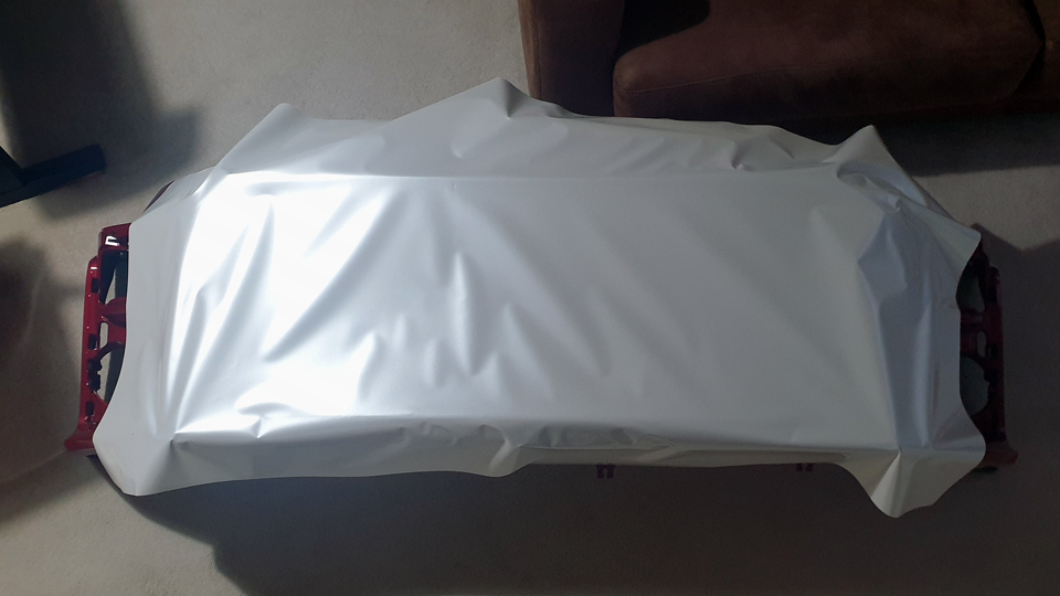 With the base wrap complete it was then a case of sorting and adding all the logos, which is a case of sorting placement, spacing, colours and sizes. As always, keeping a limited number of colours in the pallet always looks best, more 'designed'. Simple case of metallic black over the pearl white, and more of the pearl white over the red. Another colour needed was metallic yellow, which I had to get from the US in the end, but was needed for some of the logos and was nice to break up the colour a little.