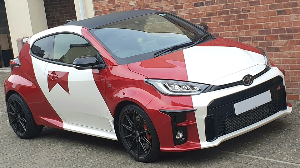 The Yaris GR is a great little car, and return to turbo 4WD WRC pedigree for Toyota not seen since the Corolla WRC inthe late 90's. Customer was set on a Marlboro livery from the beginning so it was simply a case of picking the vinyls and working out the design. The original image that was sent over needed some amendments, but we were soon ready to go. The car itself is a nice pearl metallic red, so we went with a matching pearl metallic white for the base wrap, onto which metallic colours would be added for the logos.