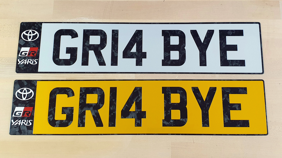 We left the roof clear of any graphics as the owner is going to have the carbon weave wrap removed and the oem forged carbon roof lacquered and polished up. To match in with that we added a pair of Skewer's carbon fibre number plates, with a new reg., this time using a matching forged carbon.