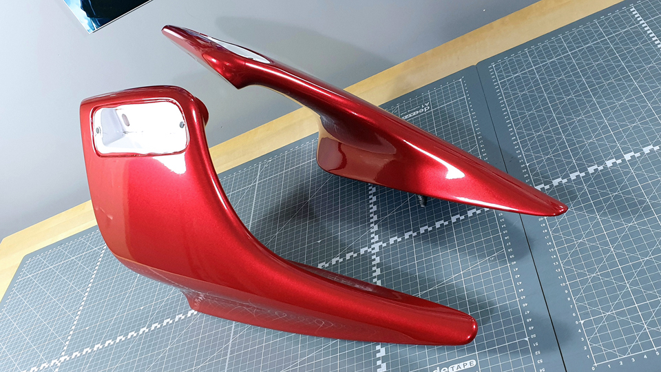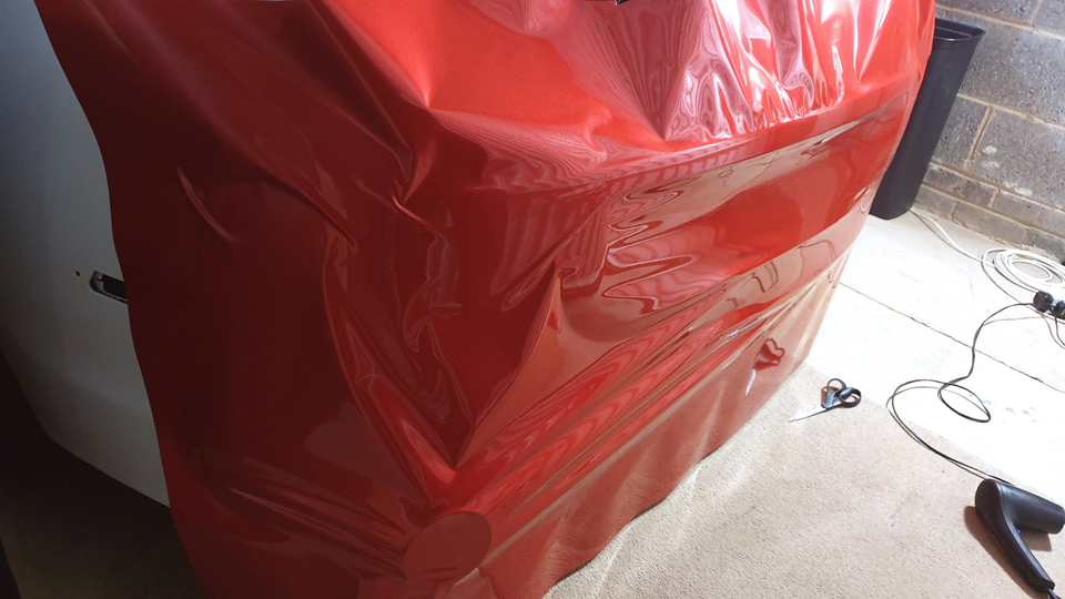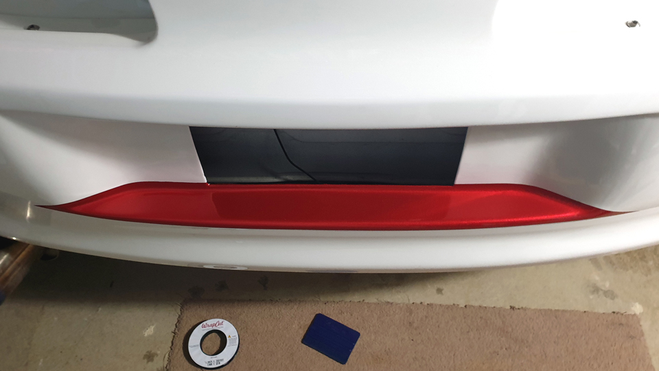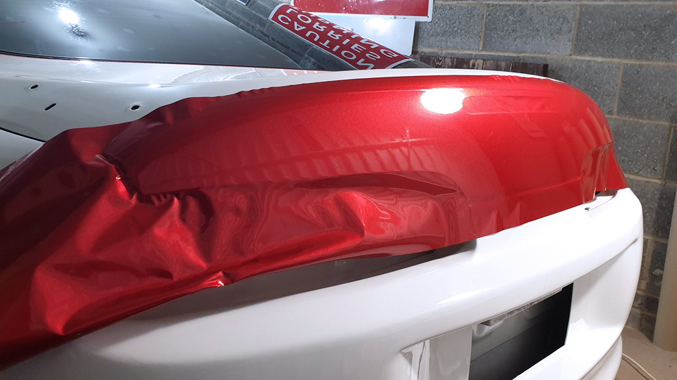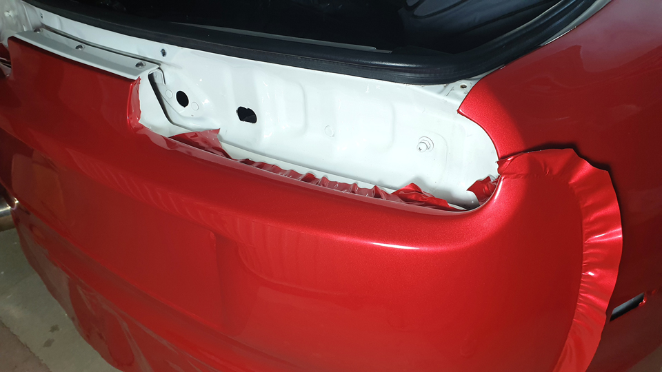 The rear end wrap was the meat of this job, so the obvious place to start. Rear lights, bumper reflectors and the spoiler were removed then it was full steam ahead. With the rounded shape it was a case of working out what inlays or overlays were needed before the bit pieces of wrap were applied.