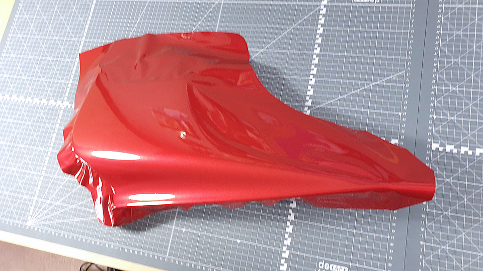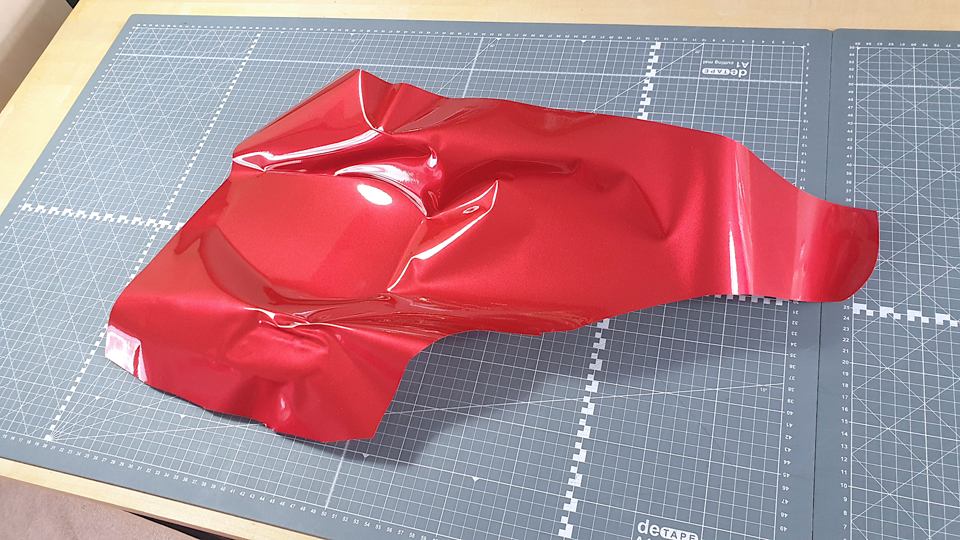 Still plenty of wrapping to be done at this stage; rear bumper and the sides to do. Was a bit complicated once more but with some necessary heating and some tension applied it came together. Again knifeless tape was used to sort the inlays first.