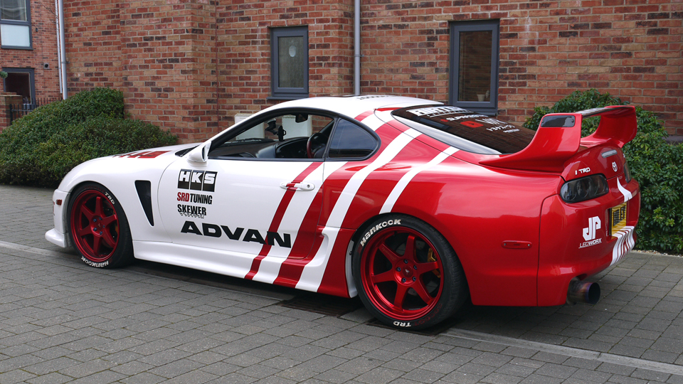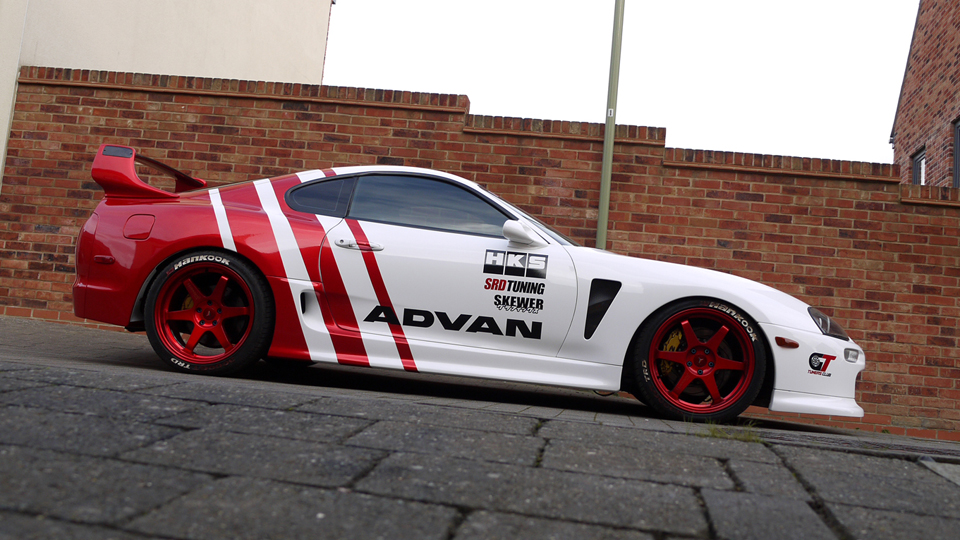The owner of this super rare TRD 3000GT Supra struck a sponsorship deal with Yokohama, in part due to the proposed livery that we had come up with; a traditional style Advan livery, but with a twist as the car is white, not the usual black. It would require a full rear end wrap in a metallic red to match the wheels and then the adding of the logos. We chose not to wrap the front bumper, but came up with a design for the bonnet to keep the theme moving forward. Everything was agreed and the car was dropped off for work to begin.